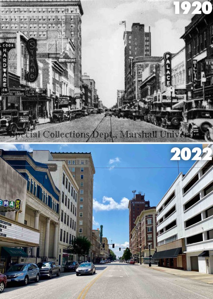 A collection of photos of downtown Huntington, WV from the past and present, matched. This is a follow-up to an article from 2018, see the original article HERE.