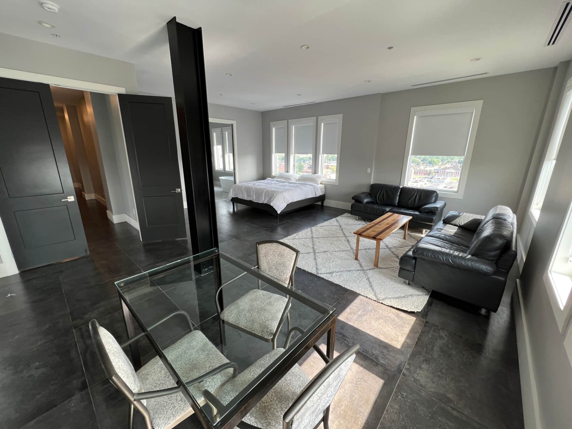 Occupying the entire 15th floor of the West Virginia Building at 910 4th Avenue, the Penthouse offers luxurious modern amenities along with 360-degree views of downtown Huntington from the heart of the city.